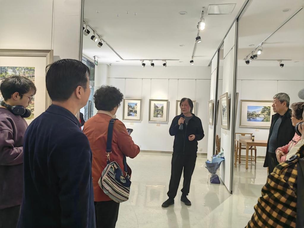 在钱绍武艺术馆,老同志们在有序进入场馆内,在作品前仔细欣赏,频频驻足,连连称赞。“诗画江南——杨茂川水彩艺术展”给了老同志们很大的视觉冲击和美的享受,大家同时充分感受到设计、美术行业的影响力。