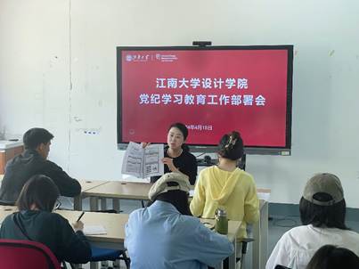 4月18日中午,设计学院在设计楼A207召开学生党支部党纪学习教育工作部署会,传达学习贯彻习近平总书记关于党纪学习教育的重要讲话和重要指示精神,部署党纪学习教育。会议由院党委副书记兼副院长江琳娜主持,全体学生党支部书记参加会议。