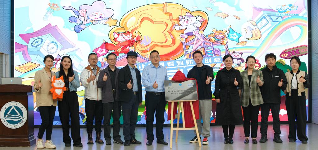 设计学院党委书记王维青和腾讯天美互娱负责人共同揭牌