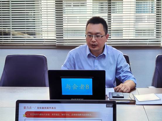 5月13日下午,设计学院党委理论学习中心组学习暨党纪学习教育读书班开班在学院B314会议室举行,校发展规划与学科建设处处长刘飞列席会议巡听旁听,院党委书记王维青主持。