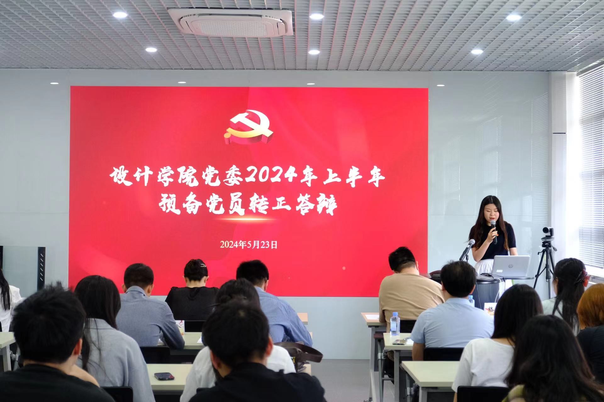 为深入学习贯彻习近平新时代中国特色社会主义思想和党的二十大精神,进一步加强党员队伍建设,切实提升党员发展质量,提优党员队伍结构保持党员队伍的先进性和纯洁性。5月23日,设计学院于C510会议室召开2024上半年预备党员转正答辩会。设计学院党委副书记兼副院长江琳娜、分团委副书记曹淑慧、党建辅导员林寅、辅导员代表纪欣卓、金钰锁、党支部书记代表刘鑫、王唯、张凌雁等出席会议,2024年上半年42名拟转正预备党员参加会议。会议由党建辅导员滕影主持。