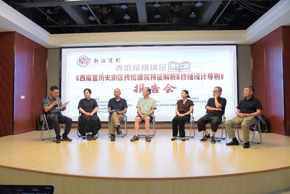8月8日,设计学院罗晶副教授主持编写的《西南营历史街区传统建筑特征凝练&修缮设计导则》(以下简称《导则》)报告会成功在南通老干部活动中心举办。南通市崇川区文旅局、和平桥街道党委、市资规局、市考古与文物保护研究所,区委老干部局、区侨联、区委史志中心、寺街西南营保护利用工作专班等市、区单位部分领导嘉宾出席本次活动,来自江海文化研究会、六桥文化社、西南营文史研究室的专家学者,濠河公司、咑开团队、文物设计及修缮企业代表,和南通大学等高校师生受邀参加活动。