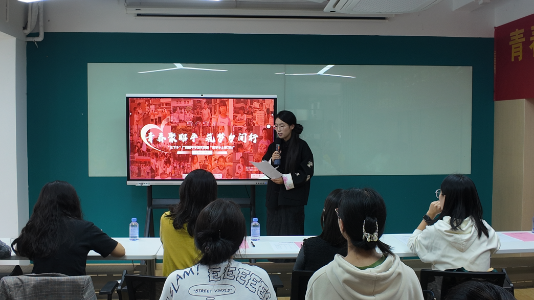 为深入学习贯彻习近平新时代中国特色社会主义思想和党的二十大精神,引导和帮助青年深入基层一线、深化调查研究,上好理论与现实相结合的“大思政课”,设计学院于2024年10月17日前往北区一站式社区开展主题为“青春为中国式现代化挺膺担当”暑期社会实践报告会。设计学院党委副书记江琳娜、辅导员团队、学院重点团队、人文学院优秀团队及本科生代表参会,会议由学生钱戈囡囡主持。