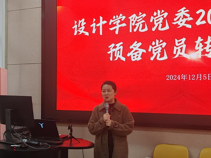 为进一步端正学生入党动机,把好党员发展的思想关、政治关、组织关。近日,设计学院于A104报告厅召开2024下半年预备党员转正答辩会。设计学院党委副书记、副院长江琳娜,学工办主任、分团委书记吴雨琛,分团委副书记曹淑慧,党建辅导员滕影,辅导员代表张凌雁、王雪宁以及2024年下半年全体拟转正预备党员及部分积极分子出席会议,本次会议由党建辅导员王唯主持。