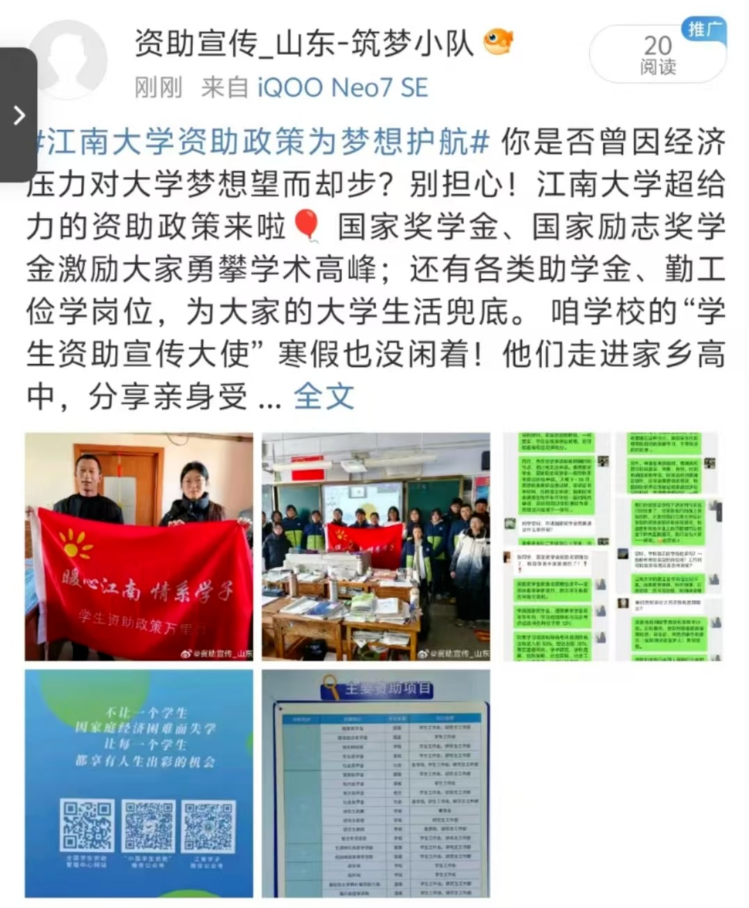 两位设计学子此次在禹城市综合高中的资助宣传活动,让更多人感受到了国家和学校对家庭经济困难学生的关怀,为学子们逐梦之路点亮了希望。未来,江南大学设计学院也将继续优化宣传工作,让资助政策惠及更多学生,为推动教育公平贡献力量。