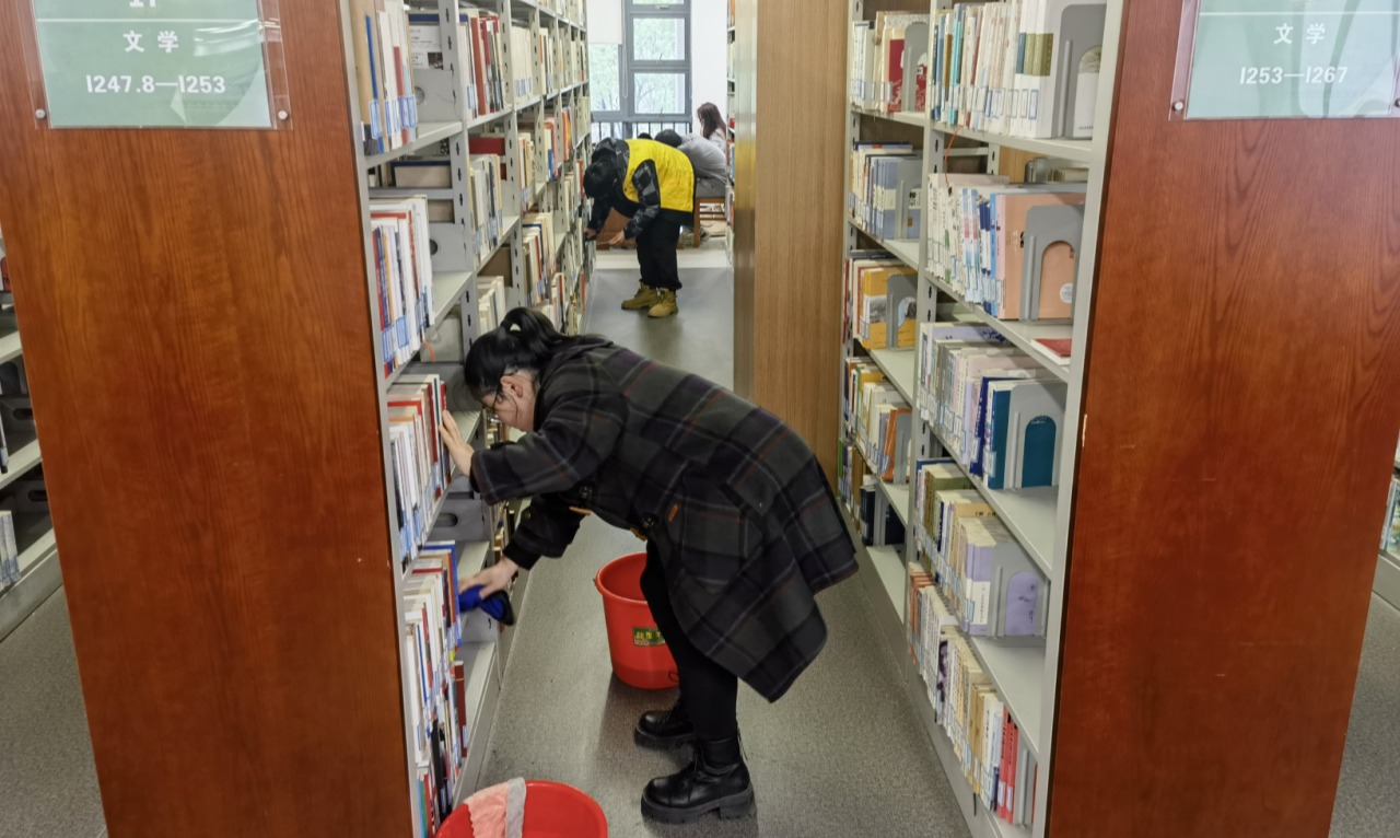 活动当天,设计学院的党员教师、团员青年与图书馆第一党支部的党员们齐聚图书馆,共同聆听图书馆工作人员介绍图书馆的日常运营与管理情况。随后,志愿者们迅速投入到工作中。擦拭书架、整理图书、清洁阅览区域……每一项任务都一丝不苟,每一处细节都精心打磨。在劳动过程中,大家分工明确、配合默契,充分展现了党团组织的凝聚力与战斗力,雷锋精神的传承与践行。