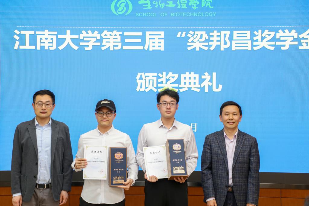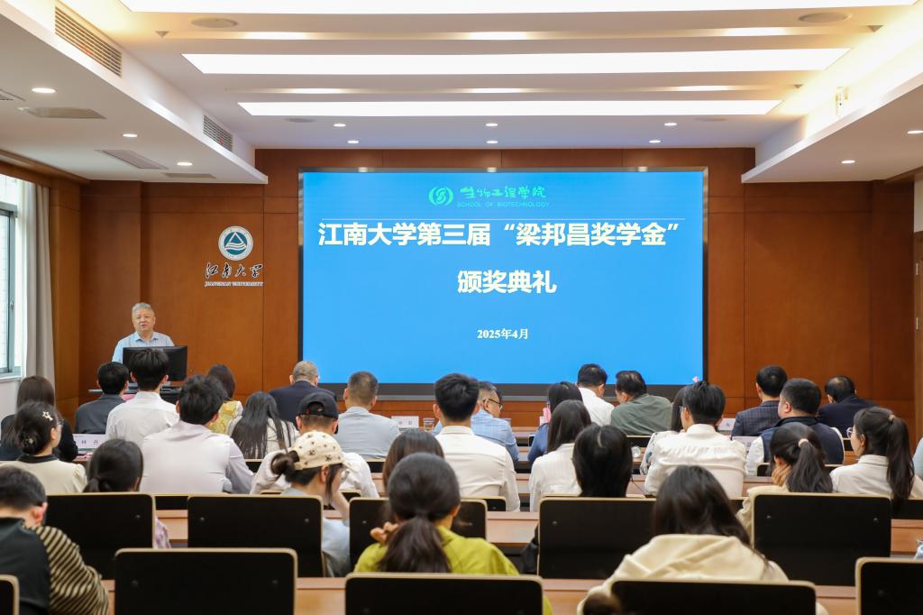4月22日下午,江南大学第三届“梁邦昌奖学金”颁奖典礼在生物工程学院举行。梁邦昌先生夫人叶秀英女士及家人、亲友,秦含章先生之子秦大文,江苏省收藏家协会酒类收藏专业委员会会长张继斌、常务副会长陈先、秘书长孙年华,江苏省酒类行业协会酒文化专委会常务副会长王树柏,洋河股份中国酿造史研究中心主任薛化松,江南大学原副校长、生物工程学院徐岩教授,生物工程学院党委书记程捷音,范文来教授等出席颁奖典礼,活动由学院党委副书记、副院长林丹主持。