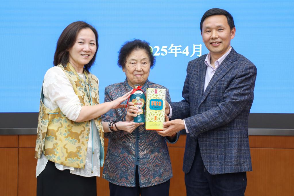 活动现场,陈先现场讲述了一瓶梁老生前签名的洋河大曲酒背后的故事,现场邀请叶秀英女士签名,并将其赠送给江南大学生物工程学院,程捷音代表学院接受了捐赠。
