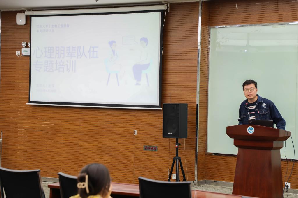 为持续强化学院心理朋辈队伍专业能力,强化假期安全教育工作实效,营造和谐平安的校园环境。4月28日晚,生物工程学院在国家工程研究中心二楼报告厅举办2025学年春季学期第二期“心灵灯塔计划”心理朋辈队伍专题培训暨五一假期安全教育大会。学院心理辅导员王珏、雪浪派出所民警康伟锋以及学院心理朋辈互助协会成员、本硕博全体生活委员、宿舍长代表共150余人参与本次培训。