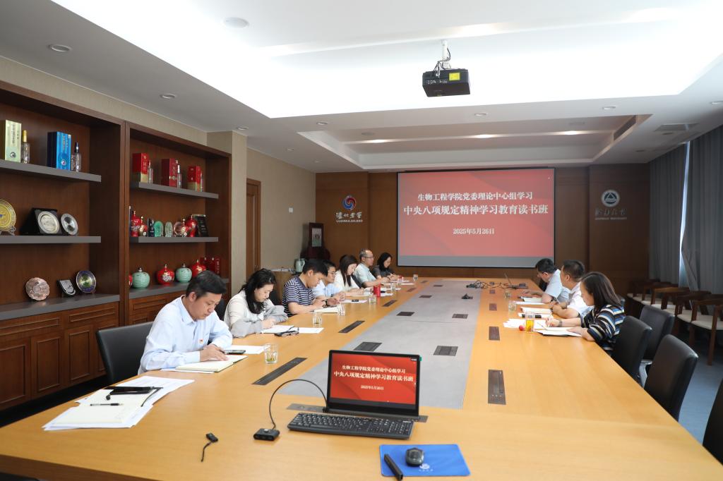 5月26日,生物工程学院党委理论学习中心组开展集中学习,深入学习领会习近平总书记关于落实中央八项规定精神的重要论述。校党委常委、党委组织部部长张梁列席指导,学院党委理论学习中心组全体成员参加会议,会议由学院党委书记程捷音主持。