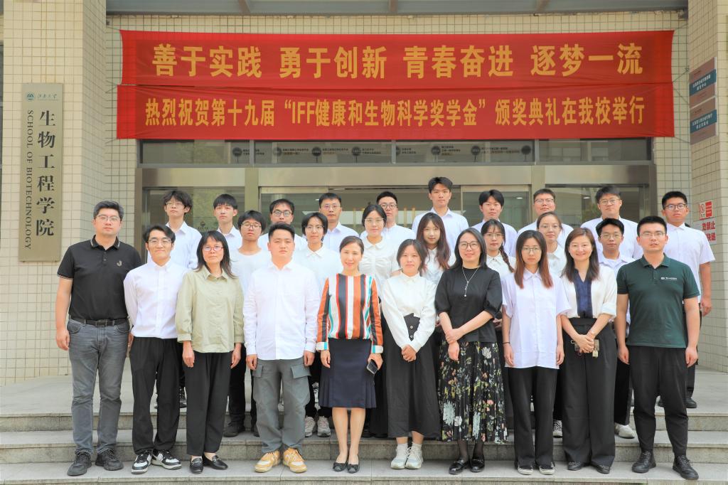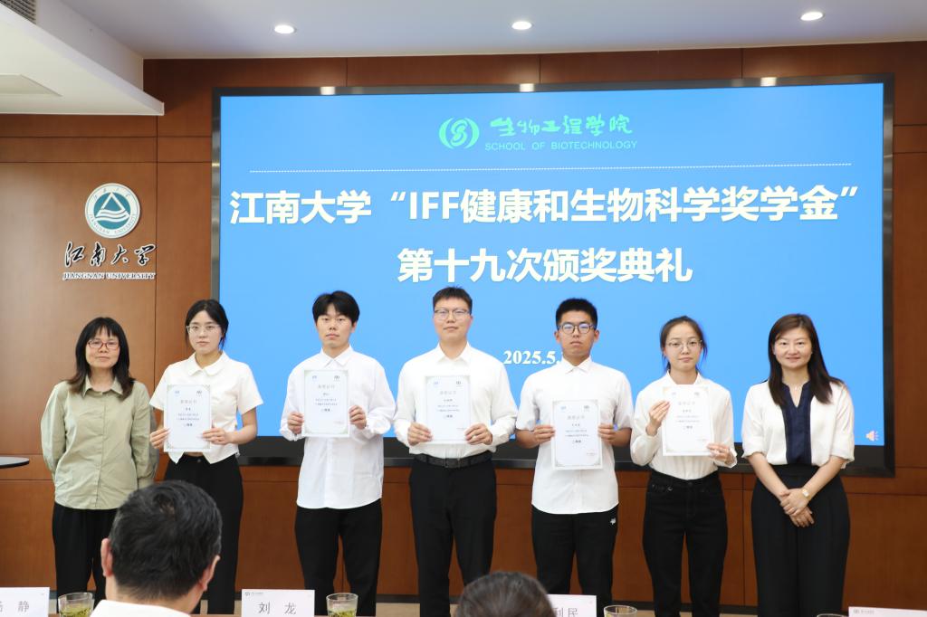 5月30日下午,江南大学第十九届“IFF健康和生物科学奖学金”颁奖典礼在生物工程学院茅台厅举行。IFF大中华区人力资源总监邱利民、无锡工厂技术经理杨静和人力资源经理许琤,生物工程学院院长刘龙、党委副书记兼副院长林丹、学工办主任兼分团委书记周春江及获奖学生出席颁奖典礼。活动由生物工程学院辅导员张同舟主持。