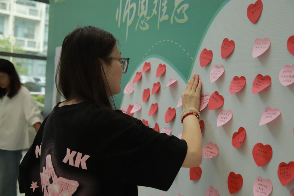 本次活动温馨有趣,涵盖了“拼图铭志”“心语传情”“花艺涵韵”及“礼赠芳华”四大环节,充分展现了学院教师队伍的凝聚力和学子的感恩之心。“拼图铭志”环节中,教师们郑重签名并共同拼合学院院徽拼图,象征全体教师凝心聚力、共筑学院辉煌的坚定信念与使命担当。“心语传情”活动中,同学们将写满温情话语的心形便利贴贴到以“教泽绵长,师恩难忘”为主题心形展板,一句句真挚的话语,承载着莘莘学子对老师谆谆教诲的衷心感谢。“花艺涵韵”环节则为教师们提供了一场陶冶性情、舒展心灵的雅集。大家巧手插花、修枝构思,于“花香笑语”间展现讲台之外的从容与才情。“礼赠芳华”环节,生物工程学院向每一位教师敬献鲜花与精美纪念摆件,以表达对老师们默默耕耘、无私奉献的诚挚谢意。礼品虽轻,敬意深长。