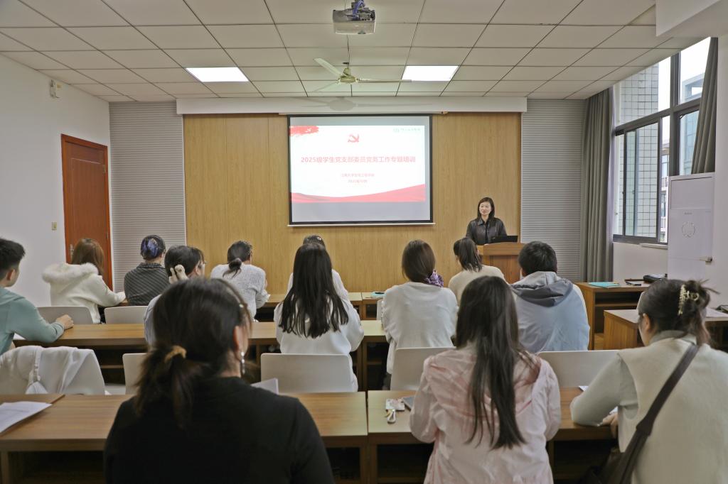 为进一步提升学生党支部党建工作质量,增进新生党支部委员的理论素养和工作能力,10月31日,生物工程学院在B417组织开展2025级新生党支部委员专题培训。学院党委副书记兼副院长林丹,学院学工办副主任、党建工作辅导员陆燊佳,2025级研究生辅导员韩俊参加活动。