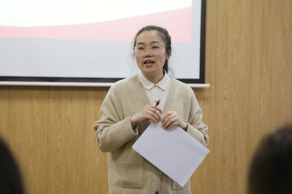 陆燊佳做党建工作实务培训,她介绍了学院学生党建基本概况,并围绕发展党员工作流程、智慧党建平台网上党支部管理、党支部工作手册填写规范、党费收缴与使用等进行了详细讲解,希望全体支委将培训内容转化为工作实效,以良好的党务工作能力、饱满的工作热情投身党建工作。