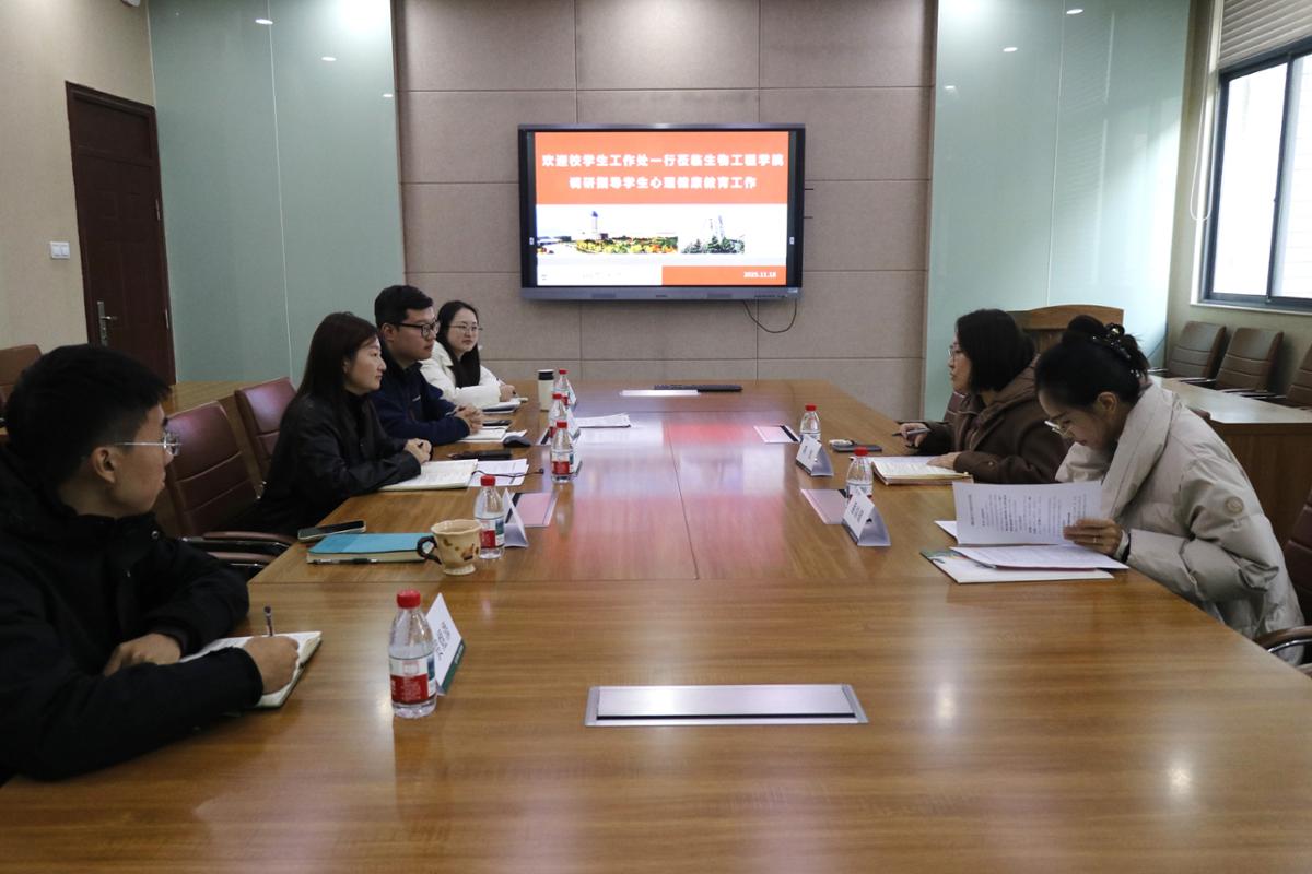 11月18日,校学生工作处副处长蒋洁、心理健康中心专职教师潘焱毓一行赴生物工程学院开展心理健康教育工作调研。生物工程学院党委副书记、副院长林丹及心理辅导员王珏、新生辅导员刘畅、韩俊、贺煜添参与调研交流。