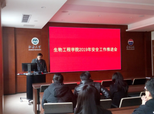为深入贯彻落实国务院领导同志关于北京交通大学“12.26”实验室爆炸事故重要指示批示精神及江南大学2019年实验室安全工作会议精神,生物工程学院于3月13日下午在茅台厅召开了生物工程学院2019年安全工作推进会。副院长饶志明,教学科研平台副主任罗玮,各团队(包括教学和科研平台)安全协管员,学生安全助理,学生代表及其他相关人员参加了本次会议。