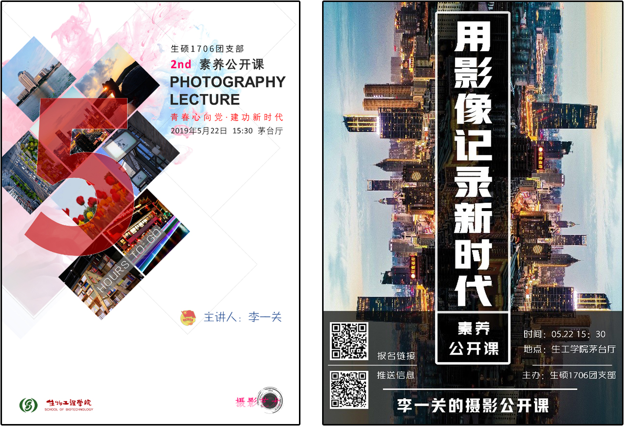 5月22日下午,由生硕1706团支部主办的“用影像记录新时代”主题素养公开课在江南大学生物工程学院茅台厅开讲。生工学院研会、学生会新宣骨干,本科团支部支委等同学慕名前来。生物工程学院团委书记葛玲老师、团委副书记徐怡丽老师、本科辅导员侯景瑞老师等出席了本次素养公开课。本次素养公开课由生硕1706团支部宣传委员李一关同志主讲。