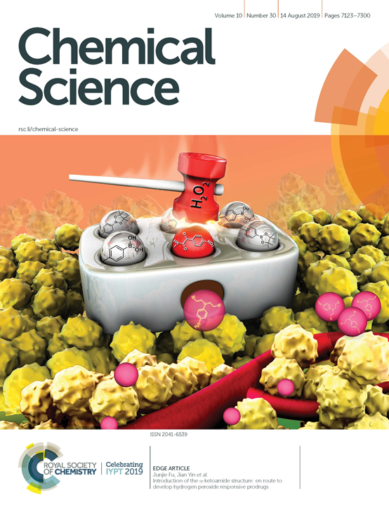 近日,英国皇家化学会(RSC)旗舰期刊Chemical Science(自然指数期刊,化学一区top,IF 9.556)内封面报道了生物工程学院尹健教授团队在新型前药领域的研究成果:Introduction of theα-ketoamide structure: enroute to develop hydrogen peroxide responsive prodrugs (Chem. Sci.,2019,10, 7156. DOI: 10.1039/c9sc00910h)。硕士生孟婷婷和博士生张朋飞分别为第一、第二作者,尹健教授和傅俊杰副教授为共同通讯作者。