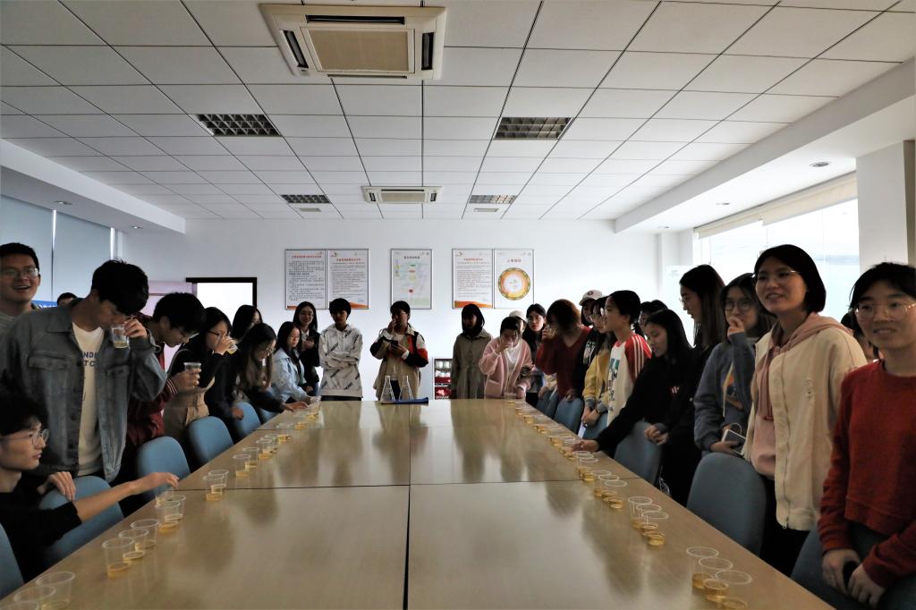 初到百威,便受到了百威英博大富豪(江苏)啤酒有限公司热情的接待,本次参观活动也全程在企业工作人员的的引领下展开。首先,同学们在接待人员的带领下品尝了不同种类的酒样,学习了如何品酒,并了解了啤酒的历史、百威英博发展历程。紧接着接待人员带领大家进入了发酵车间进行实地参观,在这里学习了解百威英博啤酒的生产工艺,包括从原辅料的入厂检测、水样、酿造、杀菌过滤、储存,到成品包装、运输,最后到销售,使学生们对啤酒的整体生产过程有了清晰的认识,同学们也切身的体验到了啤酒生产线的操作流程。