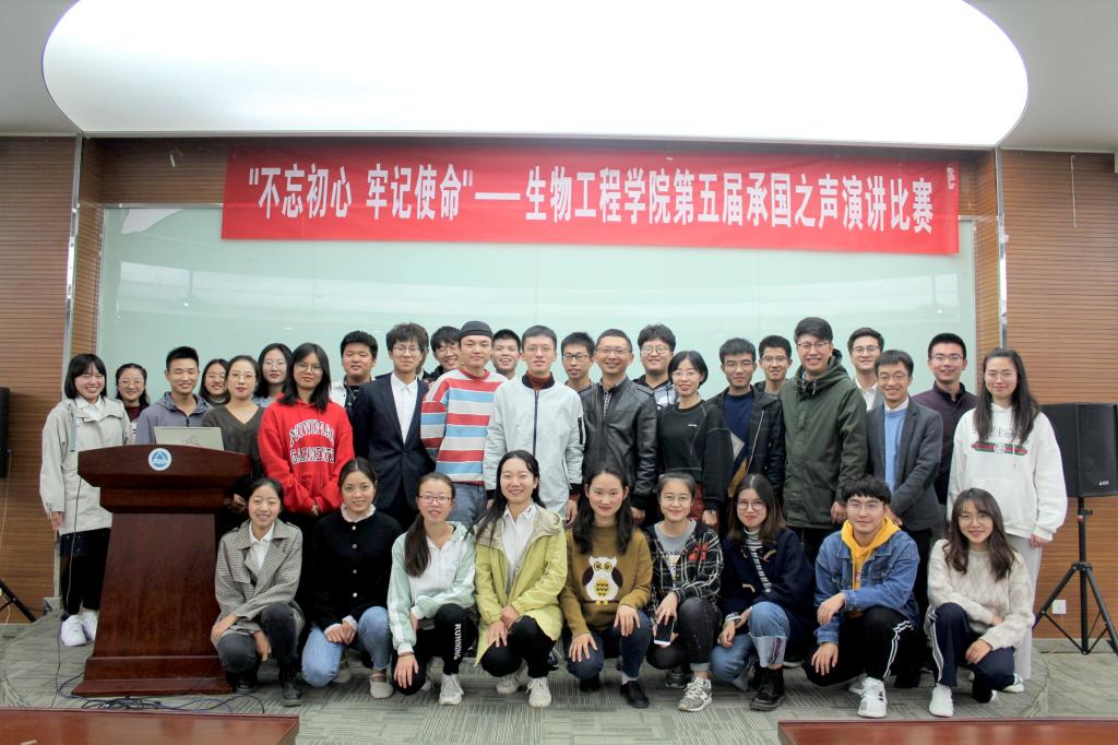 11月13日晚,生物工程学院第五届“承国之声”演讲比赛决赛在国家重点工程实验室二楼报告厅顺利举行。生物工程学院党委副书记、副院长陈勇老师,分团委书记葛玲老师及各年级辅导员老师出席活动。