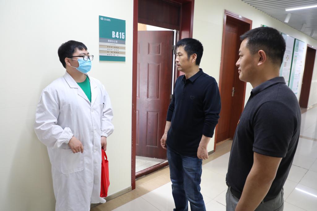 随后,戴月波走进实验室,了解学院青年志愿者工作情况、学院防疫工作情况。期间与青年志愿者代表博士生龙梦飞、硕士生杨静亲切交流谈心,表示了对志愿者们志愿服务工作的认可和感谢,鼓励志愿者们要不忘初心、牢记使命,让人生的价值在青春奋斗中实现。