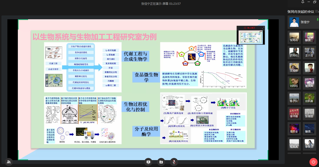 为进一步激发本科低年级学生崇尚科学、勤奋学习的热情,更好地培养其专业学习和创新实践的认知与能力,5月10日晚,生物工程学院依托企业微信举办“导学•乐学•优学”科研启蒙活动暨2019级本科生专业指导大会。学院学生党支部本硕博三位党员代表作主题分享,2019级辅导员张同舟老师参加活动。