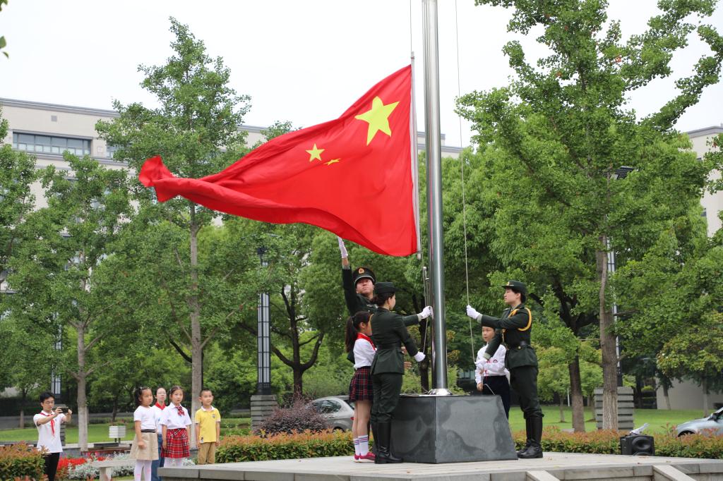 6月13日清晨,随着雄劲嘹亮的中华人民共和国国歌奏响,五星红旗冉冉升起,江南大学“大手拉小手,国旗下成长”爱国主义教育活动第二期在公益图书馆门前举行。
