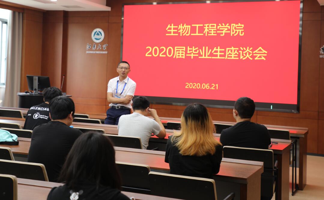 座谈会伊始,陈勇祝贺各位毕业生顺利毕业,感谢大家在学院发展中所付出的努力和做出的贡献。他希望大家不忘初心,走出校园后仍然发挥生工学院“勇于创新、善于实践”的精神。同时告诫各位同学时刻抱有敬畏之心,遵守法律法规。毕业之后,学生应以母校为荣,生物工程学院始终是大家最强有力的后盾,希望大家为母校争光添彩,彼此互为荣耀。