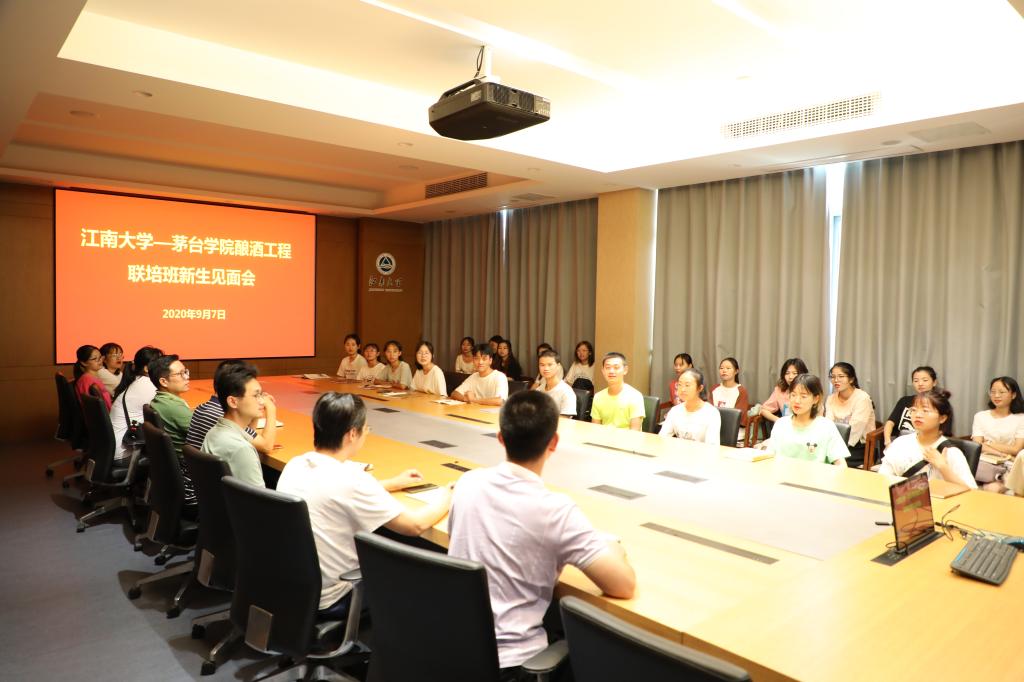 9月7日下午,江南大学-茅台学院酿酒工程联培班开班,并在生物工程学院B303会议室举行了新生见面会。生物工程学院副书记兼副院长周云龙、副院长陈献忠、茅台学院教师杨亮、联培班班主任钮成拓、辅导员张同舟及全体学生参加了见面会。