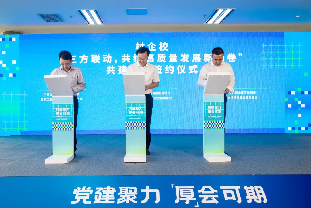 活动现场,锡山经济技术开发区厚桥街道高新技术企业党建联盟正式成立。生物工程学院党委书记王维、厚桥街道党工委书记张晓庆共同为“教学实践研习基地”揭牌,为学院师生在教科研成果转换、人才培育等方面提供帮助和支持。粮食发酵工艺与技术国家工程实验室常务副主任李兆丰、中科微至董事长李功燕、谢埭荡村党总支书记华东明为村企校“三方联动,共绘高质量发展新画卷”项目进行签约。今后村企校三方将围绕组织联动、党员联动、服务联动“三联动”探索共同发展之路,并就特色农产品研发配套和深加工产品领域开展合作,真正实现“党建引领、发展共赢”。
