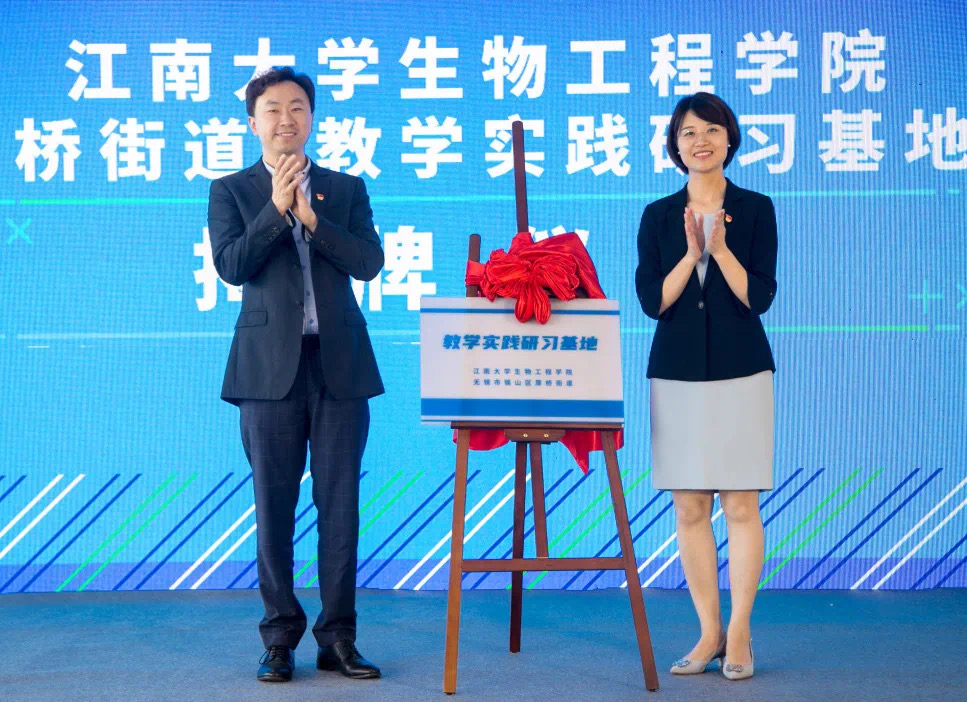 9月24日,江南大学生物工程学院厚桥街道教学实践研习基地揭牌暨村企校项目签约仪式在锡山开发区厚桥街道举行。生物工程学院党委书记王维、粮食发酵工艺与技术国家工程实验室常务副主任李兆丰、厚桥街道党工委书记张晓庆、中科微至董事长李功燕等出席签约仪式。