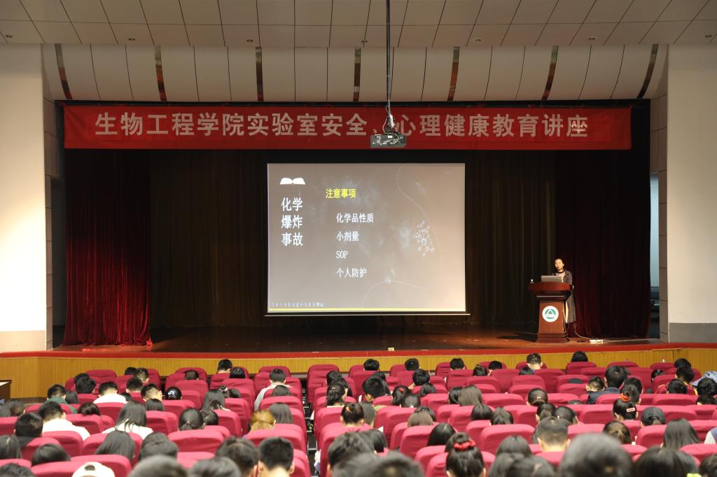 10月28日下午,生物工程学院在南区学生活动中心成功举办了研究生新生实验室安全教育及心理危机识别与应对讲座。江南大学实验室与设备管理处郑磊老师和心理健康教育中心潘焱毓老师分别做了精彩报告,学院400余名同学聆听了讲座。