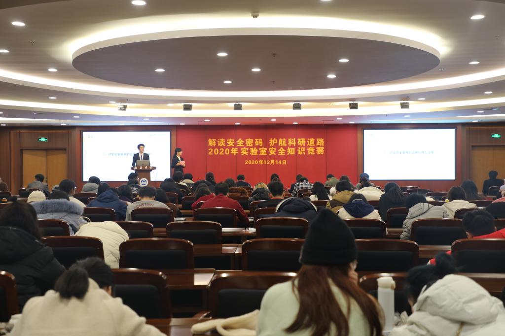12月14日晚,解读安全密码,护航科研道路——2020年实验室安全知识竞赛圆满落幕。本次比赛由江南大学实验室与设备管理处主办,生物工程学院与药学院联合承办。江南大学实验室与设备管理处高珂、生物工程学院党委副书记周云龙、药学院党委副书记白冰、生物工程学院实验教学平台主任张平、副主任杨刚龙、院分团委书记葛玲以及学院研究生辅导员和校、院研究生会主席团成员出席活动。比赛由生物工程学院研究生会张倚菲和鲁佳朋同学主持。
