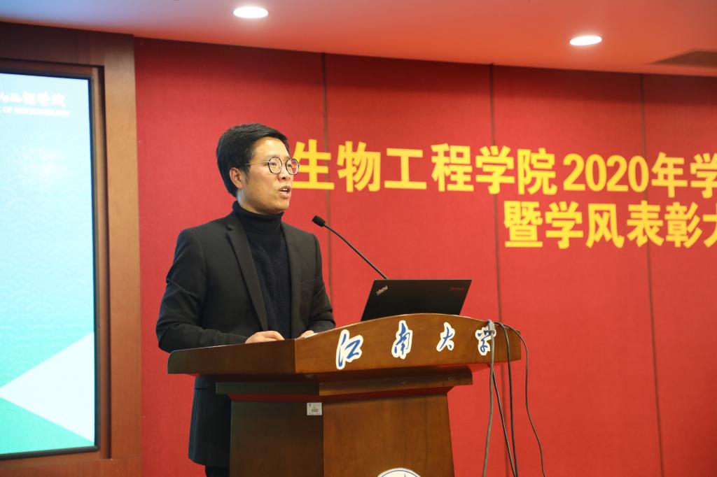 12月21日,生物工程学院2020年学风建设推进会暨学风表彰大会在图书馆五楼报告厅举行,学院党委副书记兼副院长周云龙、副院长陈献忠、全体辅导员老师以及获奖学生代表、各年级同学等260余人参加大会。