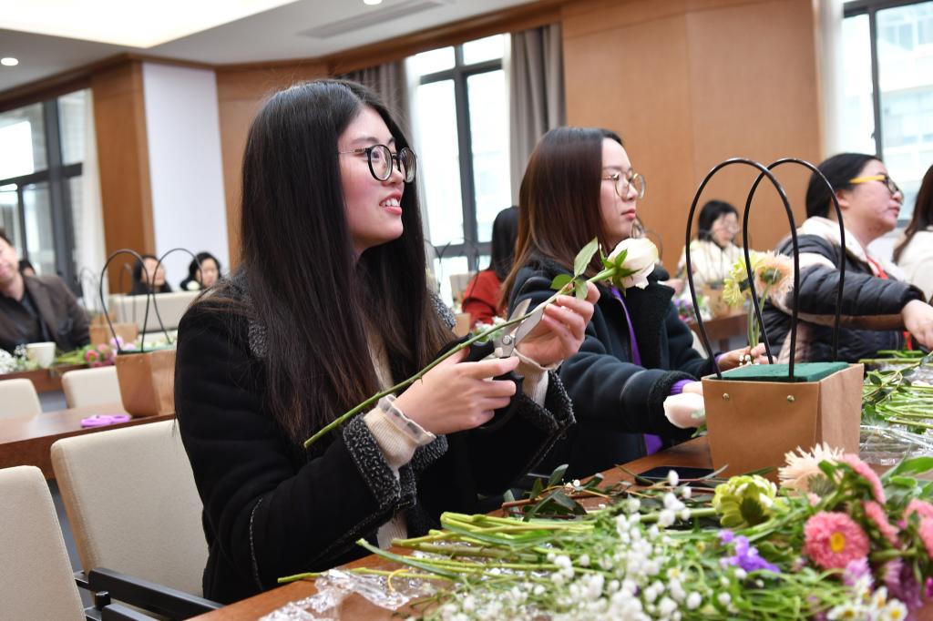 以美好之心,谱奋斗之曲,在三八国际劳动妇女节来临之际,生物工程学院分工会为学院教师准备了“醉美巾帼”系列活动,为女性教职工庆祝节日,丰富女教师的业余文化生活。学院工会于3月5日下午在茅台厅举行了插花活动,3月8日上午举办了新时代女性形象中的色彩美学讲座。