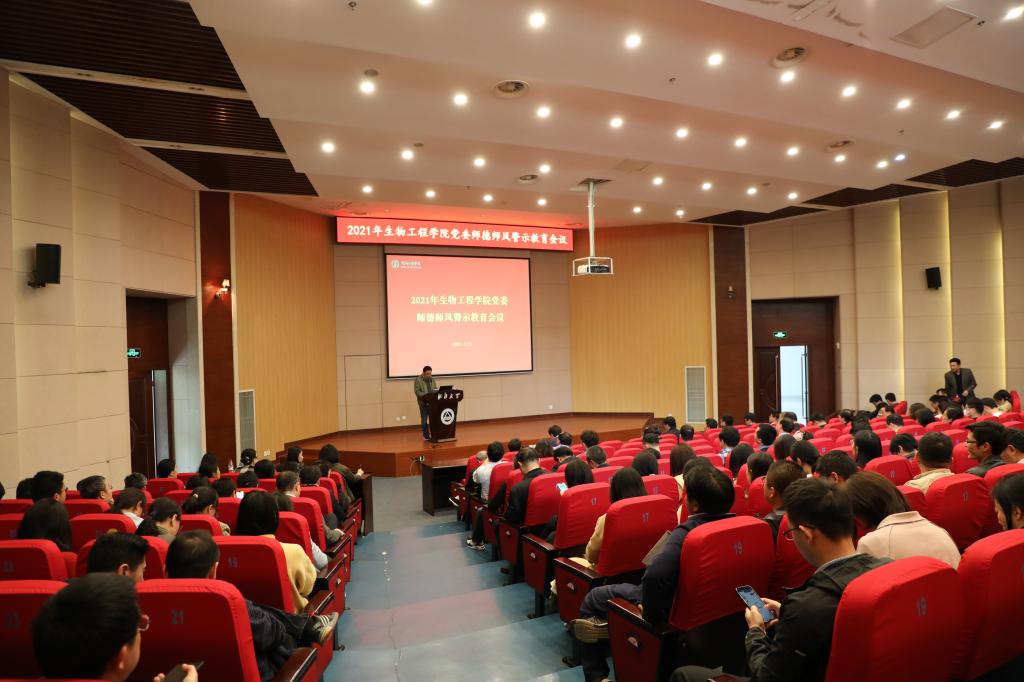 4月21日,生物工程学院党委师德师风警示教育会议在远东报告厅举行,生物工程学院、粮食发酵工艺与技术国家工程实验室、未来食品科学中心教职工参加会议。