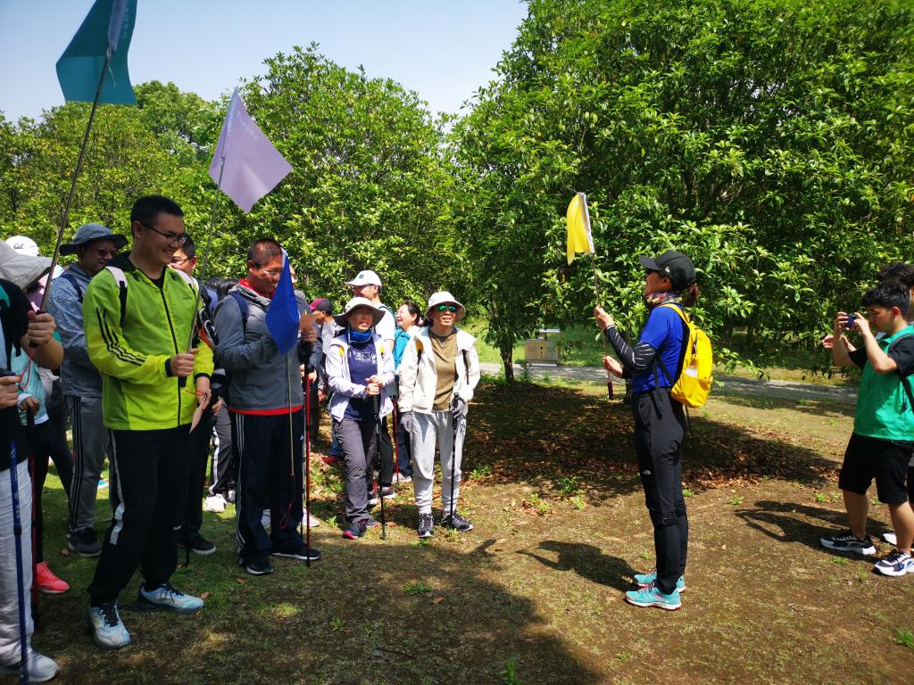 活动从宝界公园入口处出发,以大浮南村为终点,全程约6公里。出发前生物工程学院分工会委员郑飞云老师进行了热情洋溢的活动介绍,他希望参与人员发扬勇于挑战、团队协作的精神,通过户外运动得到身体上的锻炼、精神上的愉悦和意志上的历练。分工会委员周楠迪老师介绍了此次登山活动的比赛规则和安全提示,并强调了做好环保工作。方芳老师向大家介绍了登山杖的使用方法以及注意事项。随后,8支队伍在队长的带领下取好队名和口号,分工会副主席徐静老师为各队队长授旗,一声令下各队依次向山顶进发。