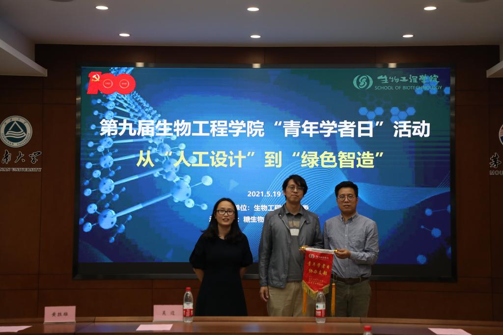 生物工程学院“青年学者日”活动是重要的青年教师学术交流平台,由学院党委主办,各教工党支部承办,迄今已是第九届。本届活动由糖生物技术群教工党支部承办,得到了学院领导和各团队老师的大力支持,学院党政班子成员出席会议并参与研讨活动。活动最后,院党委副书记周云龙将“青年学者日”承办党支部红旗交给下一届承办的工艺与设备教学群党支部,并期待下一届“青年学者日”活动更加精彩,也鼓励青年教师们站在百年交汇点上乘风破浪,扬帆远航!