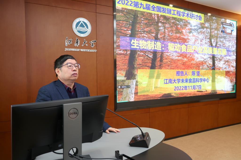 中国工程院院士、江南大学未来食品科学中心首席科学家陈坚作特邀报告