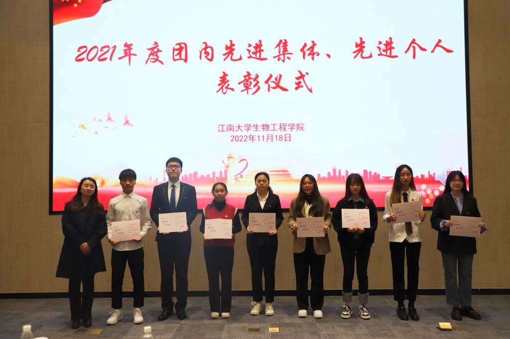 在决赛计分期间,举行2021年度团内先进集体和先进个人表彰仪式。获奖同学代表无锡市优秀共青团员余杨青、院青马班成员余乐彤、院团务中心郭雨雯以“奋进新征程 建功新时代”的主题分享环节,分别围绕“十五分钟便民圈”“新时代青年发展”和“青年有为”进行交流,展现了新时代生工学子的蓬勃朝气。