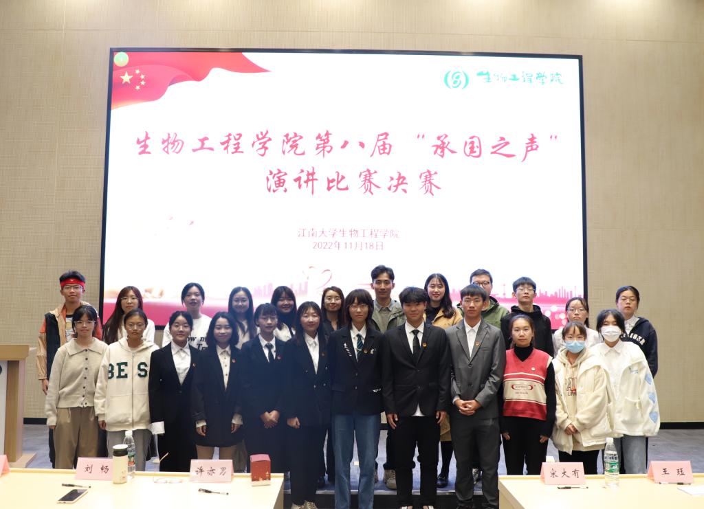 为深入学习宣传贯彻党的二十大精神,弘扬爱国情怀,在江南大学64年校庆之际,生物工程学院第八届“承国之声”演讲比赛决赛于11月18日在未来食品科学中心B102举行,生物工程学院分团委书记许亦男及学院辅导员老师担任比赛评委。