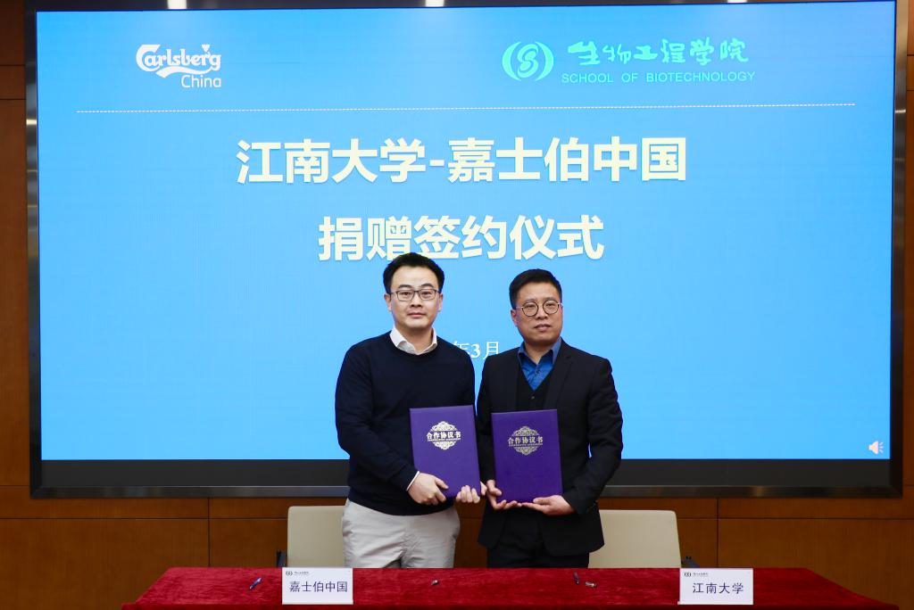 3月24日,嘉士伯中国人力资源副总裁汤澍浩一行来校开展校企合作交流活动。上午,校企合作签约仪式、实验室揭牌仪式及首届“嘉士伯奖学金”颁奖典礼在生工B314举行。嘉士伯中国人力资源副总裁汤澍浩、企业事务部高级总监谢夷、质量总监包莹、人力资源总监孙洁华、企业事务部高级经理周意立,江南大学社会合作与校友联络处处长周云龙、生物工程学院党委书记程捷音、院长刘龙及全体获奖学生出席活动。