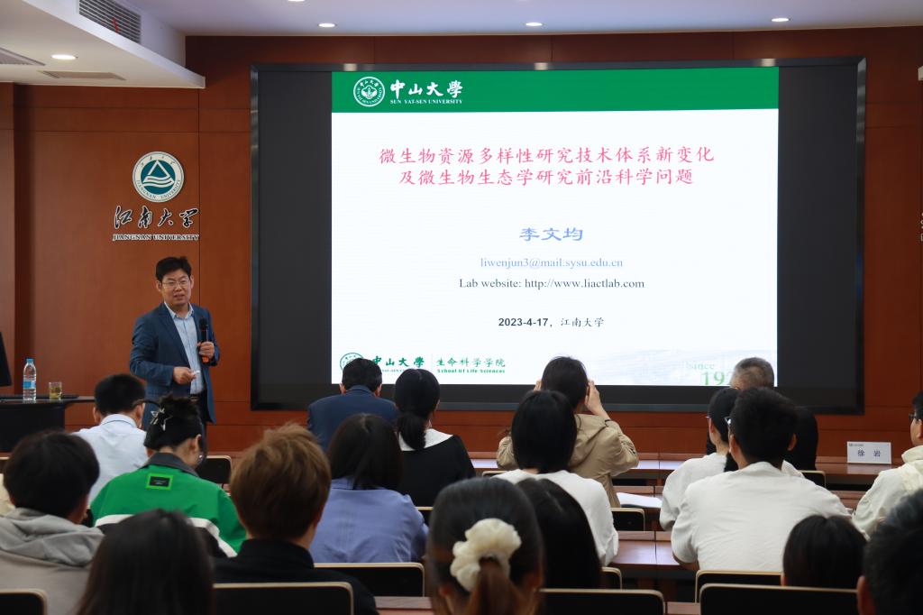 4月17日,中山大学生命科学学院百人计划、珠江学者、逸仙学者特聘教授李文均做客第103期朱宝镛大讲堂,以“微生物资源多样性及微生物生态学研究前沿科学问题及技术体系新变化”为题,为生物工程学院师生讲述了未/难微生物可培养研究的最新进展。讲座由生物工程学院院长刘龙教授主持,近百名师生聆听讲座、参与互动,气氛热烈。