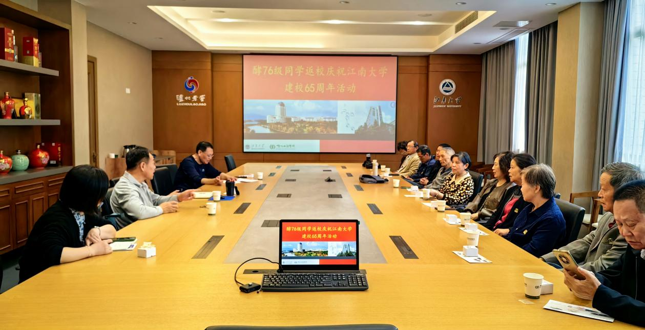 10月20日上午,我校发酵工程76级部分校友在阔别校园近50年后重返母校,共叙“发酵情”,共庆建校65周年。生物工程学院党委书记程捷音、学校校友会秘书长林云鉴、学院办公室主任徐静等参加校友座谈会。