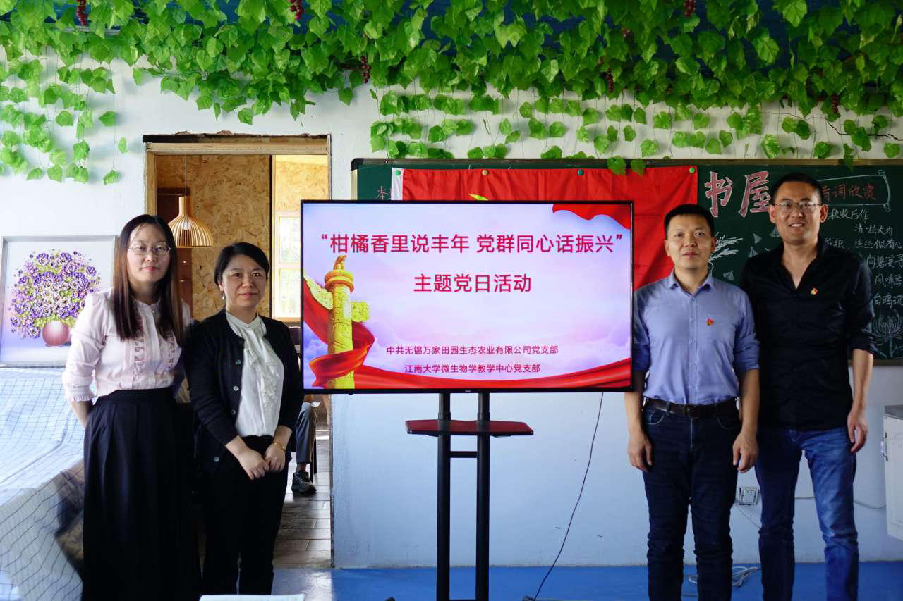 10月26日下午,生物工程学院教工微生物学教学中心党支部与无锡万家田园生态农业有限公司党支部,在万家田园军嶂田园社区党建生活馆联合开展“柑橘香里说丰年,党群同心话振兴”主题党日活动。无锡万家田园生态农业有限公司党支部书记罗玉军,教工微生物学教学中心党支部书记陈献忠、副书记徐美娟及双方党员代表参加本次活动,活动由罗玉军主持。