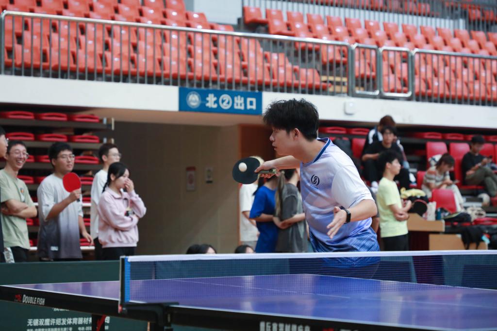 本次乒乓球比赛依据各学院人数规模分为A、B两组,采用小组循环赛和淘汰赛制,根据学院团体得分决出名次,2比赛项目包含男单、女单、男双、女双和混双。运动员们活力四射,激情扣杀,精力高度集中,拼尽全力发挥出最高水平,在比赛中充分展现自己的乒乓球技术。直拍、横拍、扣球、旋转球、弧线球等都得到了一一体现,比赛中不时传出热烈的喝彩声,兴奋的“好球”声不断。