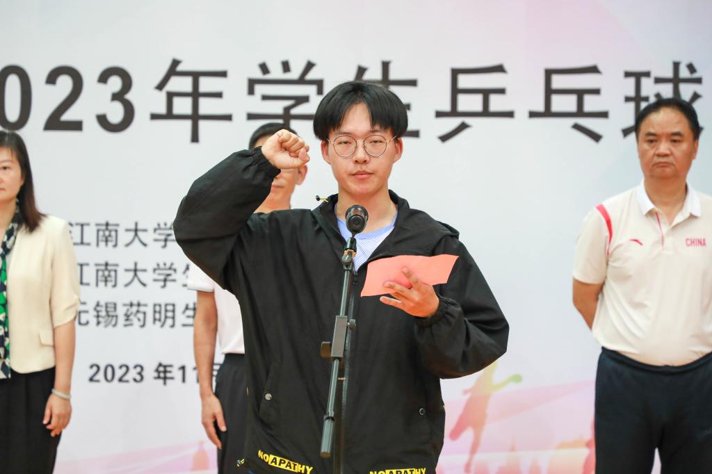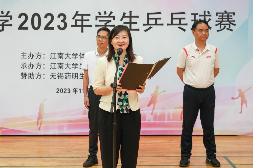 为丰富同学们的课余生活,加强同学们体育锻炼意识,11月5日,江南大学2023年学生乒乓球比赛在江南大学体育馆举行。本次比赛由校体育运动委员会主办、生物工程学院承办。江南大学体育部党总支书记周建中,生物工程学院党委副书记、副院长林丹,江南大学体育部群体竞训管理中心主任龚宁出席开幕式。