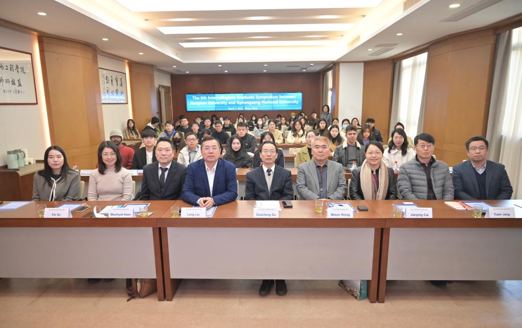 12月4日-6日,第六届江南大学-韩国庆尚国立大学研究生学术论坛(The6th Intercollegiate Graduate Symposium between Jiangnan University and Gyeongsang National University)在江南大学成功举办。江南大学党委常委、副校长堵国成,韩国庆尚国立大学应用生命科学系主任Ilkeun Kong,江南大学生物工程学院院长刘龙、江南大学国际交流合作处副处长蔡建英,韩国庆尚国立大学应用生命科学系Moonhyuk Kwon教授,Yusin Jang教授,江南大学生物工程学院许菲教授,院长助理王金晶等参加开幕式。论坛吸引了来自苏州大学、南京师范大学、江苏大学等“江苏-韩国高校联盟”成员单位的百余位师生以线上方式参与了本次会议。开幕式由江南大学生物工程学院副院长聂尧主持。