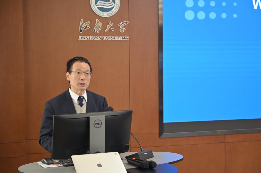 学术报告环节,韩国庆尚国立大学应用生命科学系Ilkeun Kong教授、Moonhyuk Kwon教授、江南大学生物工程学院许菲教授及双方研究生代表,相继围绕生物制造在生物医药、生物材料、植物天然产物及功能化合物合成等方面的研究,以及与AI结合的生物技术开发等主题进行了精彩报告和积极交流,拓宽了学术内涵认知、增强了学术交流成效。