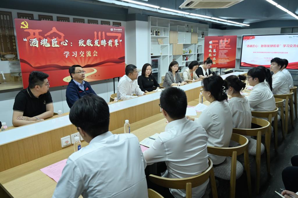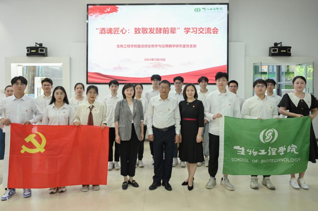 5月28日,生物工程学院酿造微生物学与应用酶学研究室党支部联合酿酒2002、酿酒2202“赤水河”特称团支部举办“酒魂匠心:致敬发酵前辈”学习交流会。校党委副书记、校长陈卫,生物工程学院党委书记程捷音,党委副书记兼副院长林丹列席指导。交流会由党支部书记余杨青主持。